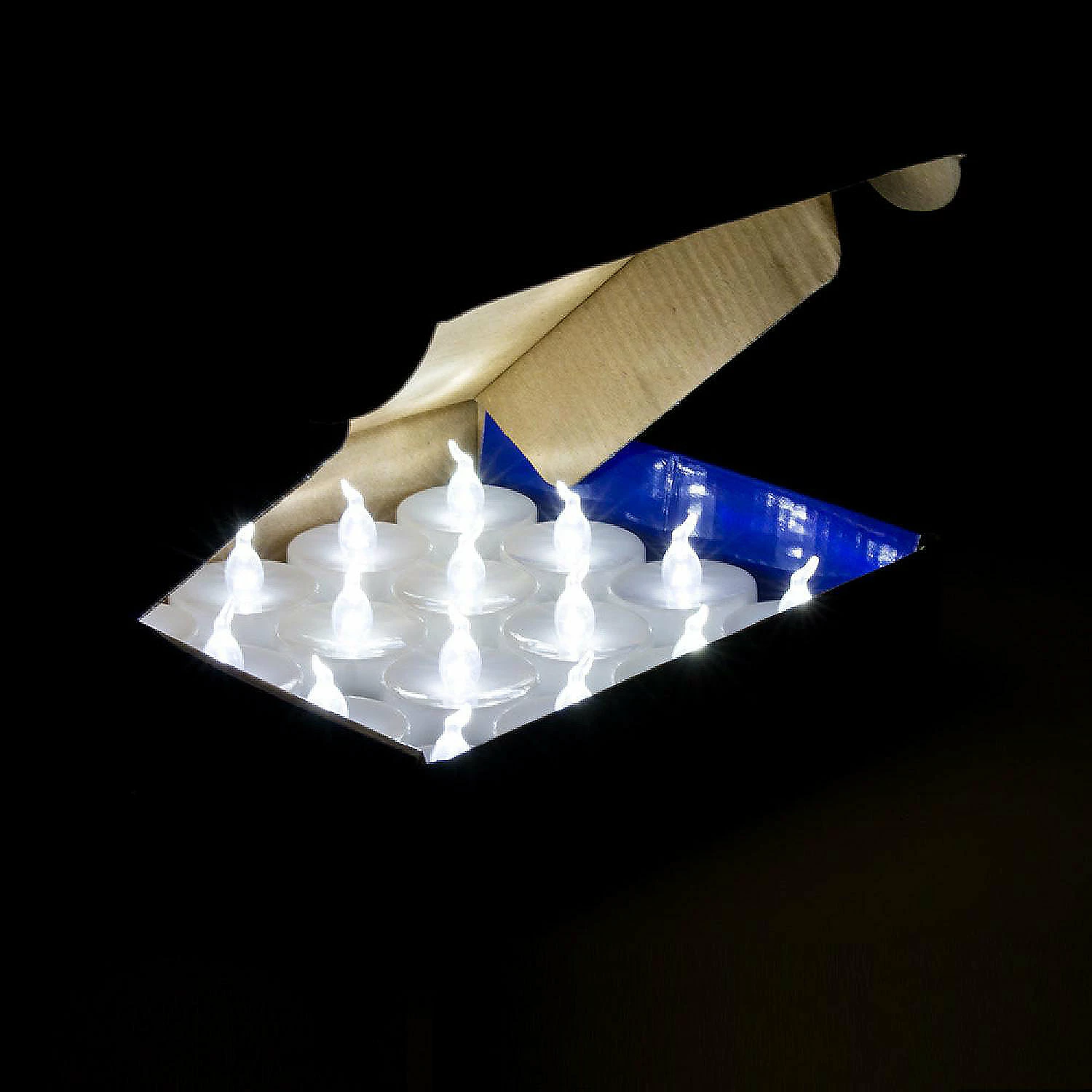 Energy-saving, Flameless, smokeless and long-lasting, zero carbon emission safe to use. No hot and dirty wax to deal with. Realistic light. Easy to use, simply switch on/off on the bottom to control the candlelight. Timer function: 6 hours on and 18 hours off, 24 hours cycle work. Without the trouble to turn it on and off every time. Battery: CR2032 button cell; Battery life:72 hours-100hours; Light color: Cool White; Package includes: 24 X LED tealight Candle; 24 X CR2032 coin batteries (inside the candles)