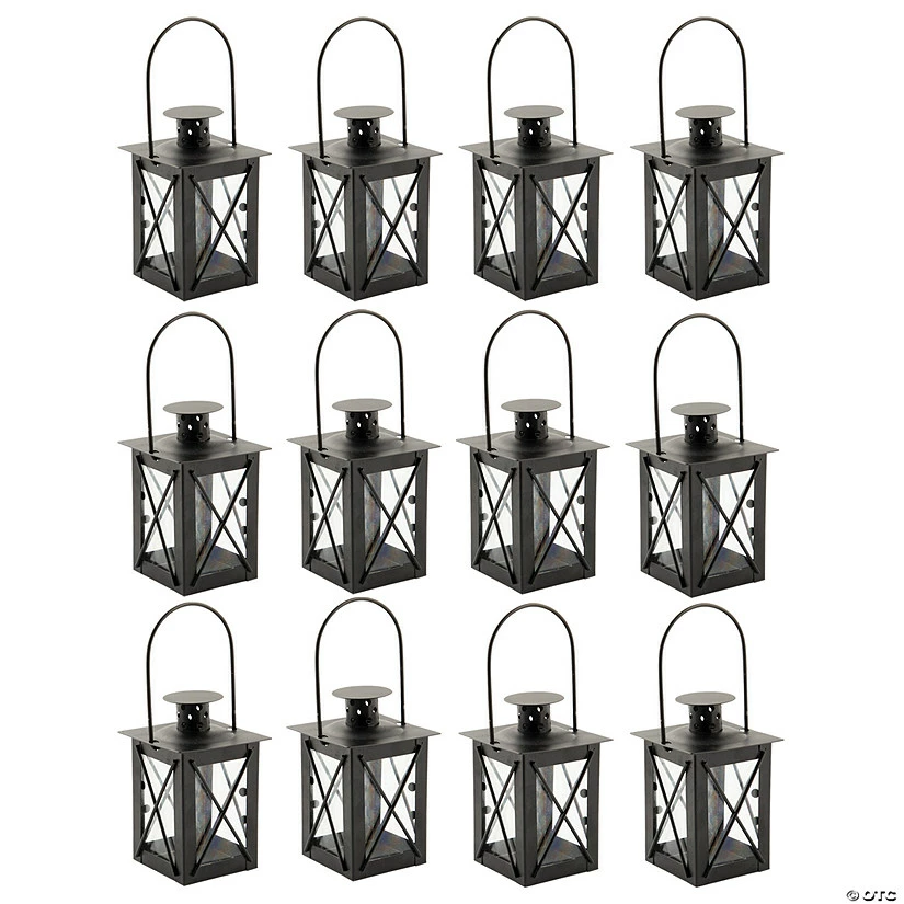 Decorate tables for a wedding reception, wedding ceremony, anniversary party or backyard BBQ with these chic party supplies. With their neutral black color, these mini lanterns complement many different party themes. Add a battery-operated tea light (sold separately on this site) for the soft glow of candlelight at your celebration. Metal and glass. 3″ x 5″ with 3 1/2″ handles.