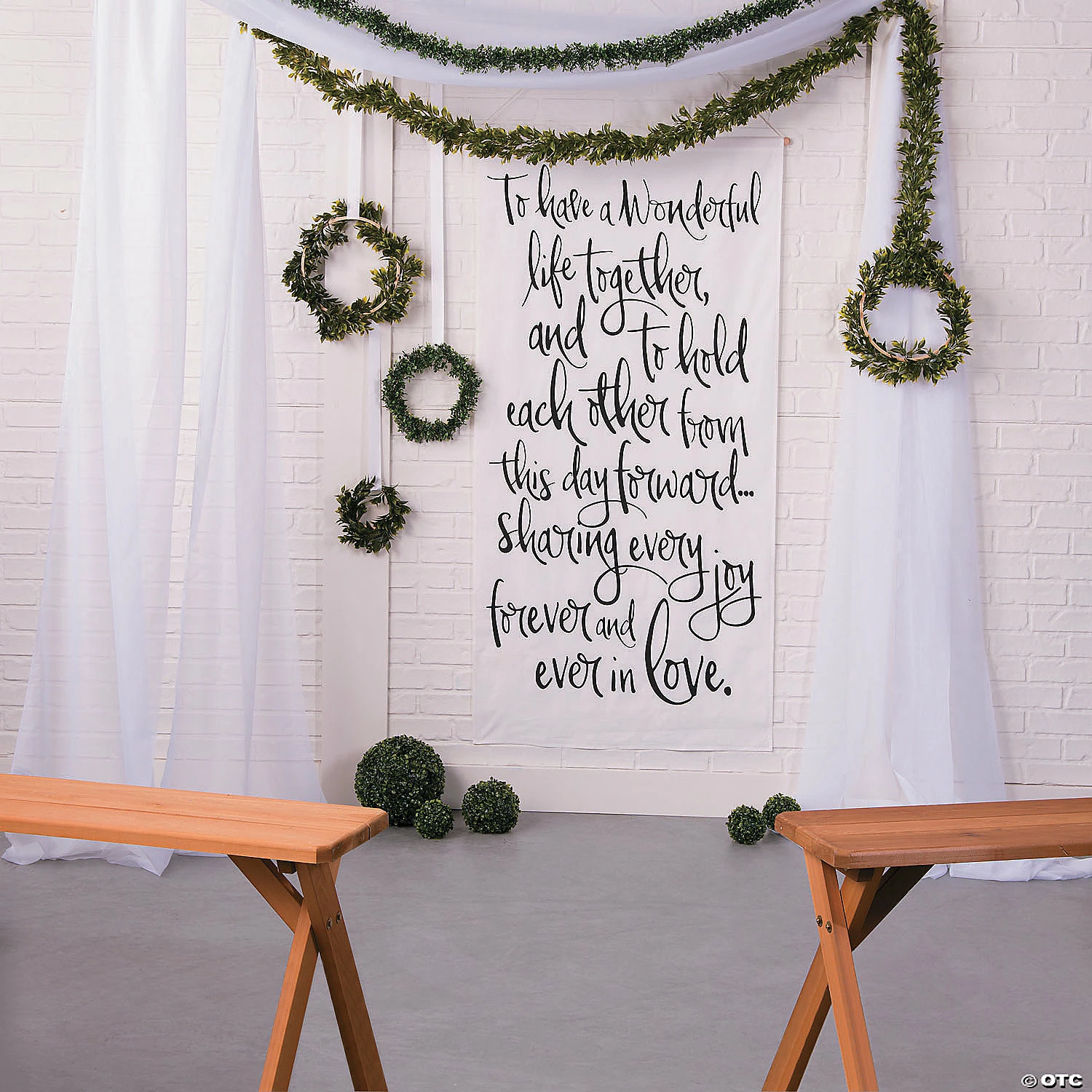Celebration Canopy. Give the reception hall a soft elegant look with the Celebration Canopy. Use this sheer white polyester fabric alone or with garland to create a stunning canopy. Versatile and fun, this polyester canopy can be hung over the bride and groom at the wedding ceremony, the reception tables or dance floor. Includes enough material to cover approximately 32 sq. ft. Imported. Includes hooks. Frame not included.