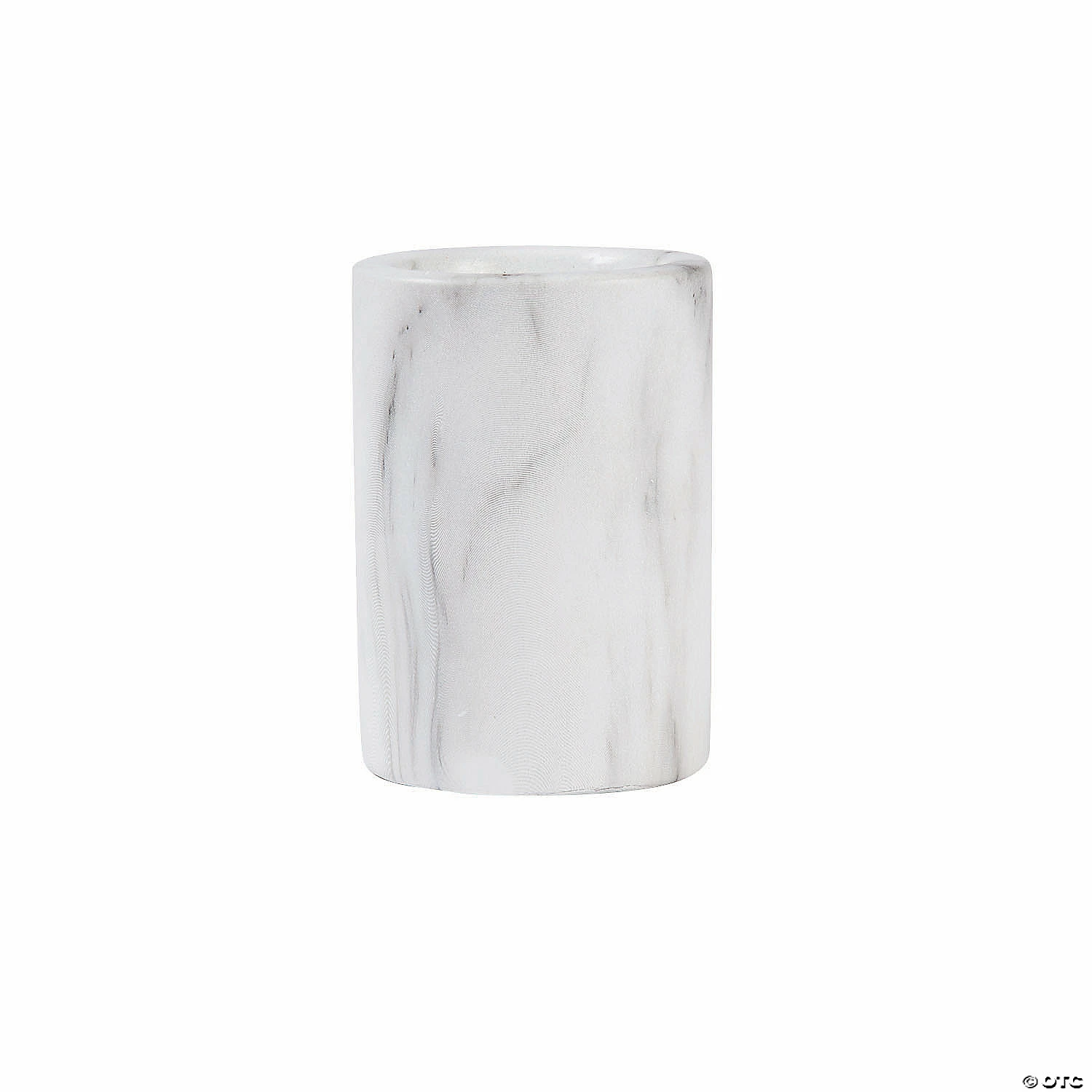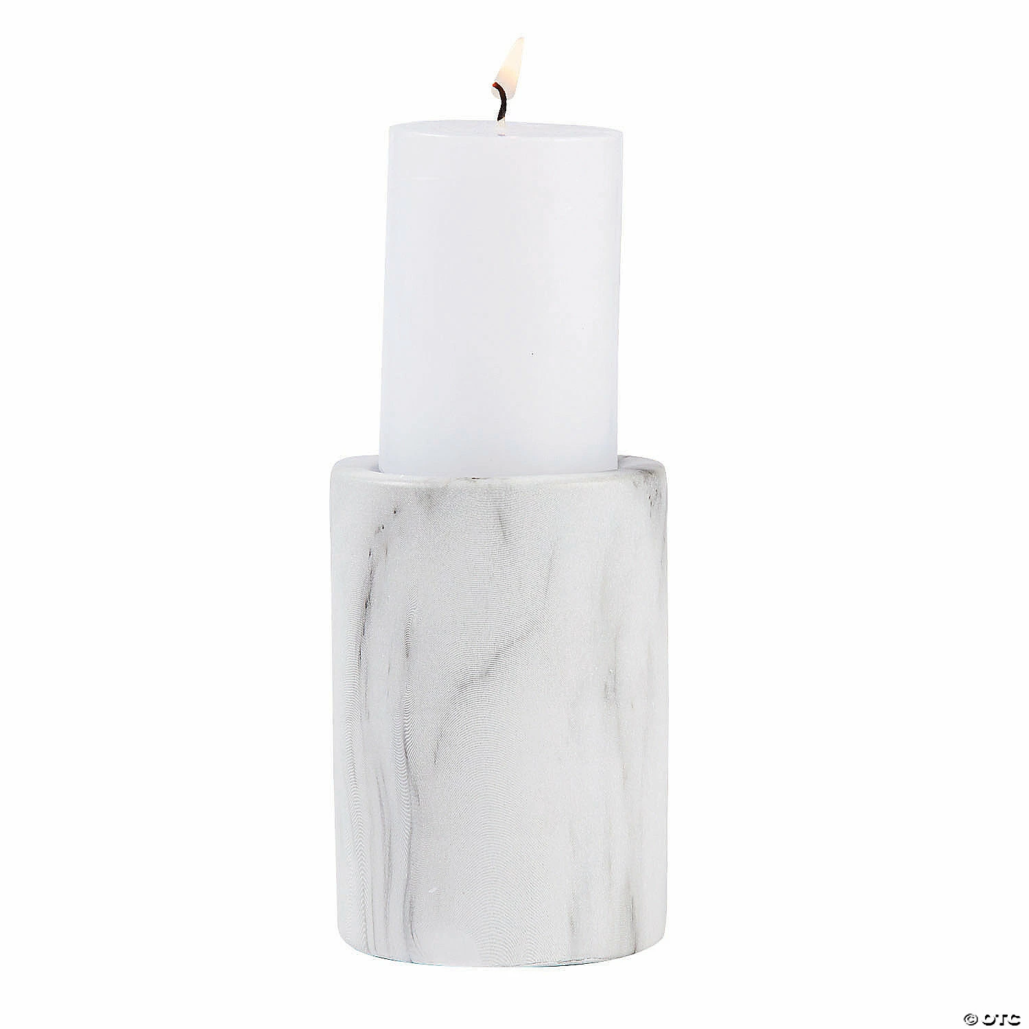 Create the modern wedding of your dreams starting with these Faux Marble Pillar Candle Holders! The set of three candle holder pillars features an elegant white and gray marble print and will coordinate beautifully with a variety of wedding decorations and color schemes. Arrange the wedding candle holders with a table runner, greenery and floral arrangements to make the perfect DIY centerpiece. Ceramic. (3 pcs. per set) 2 3/4″ diam. x 4″