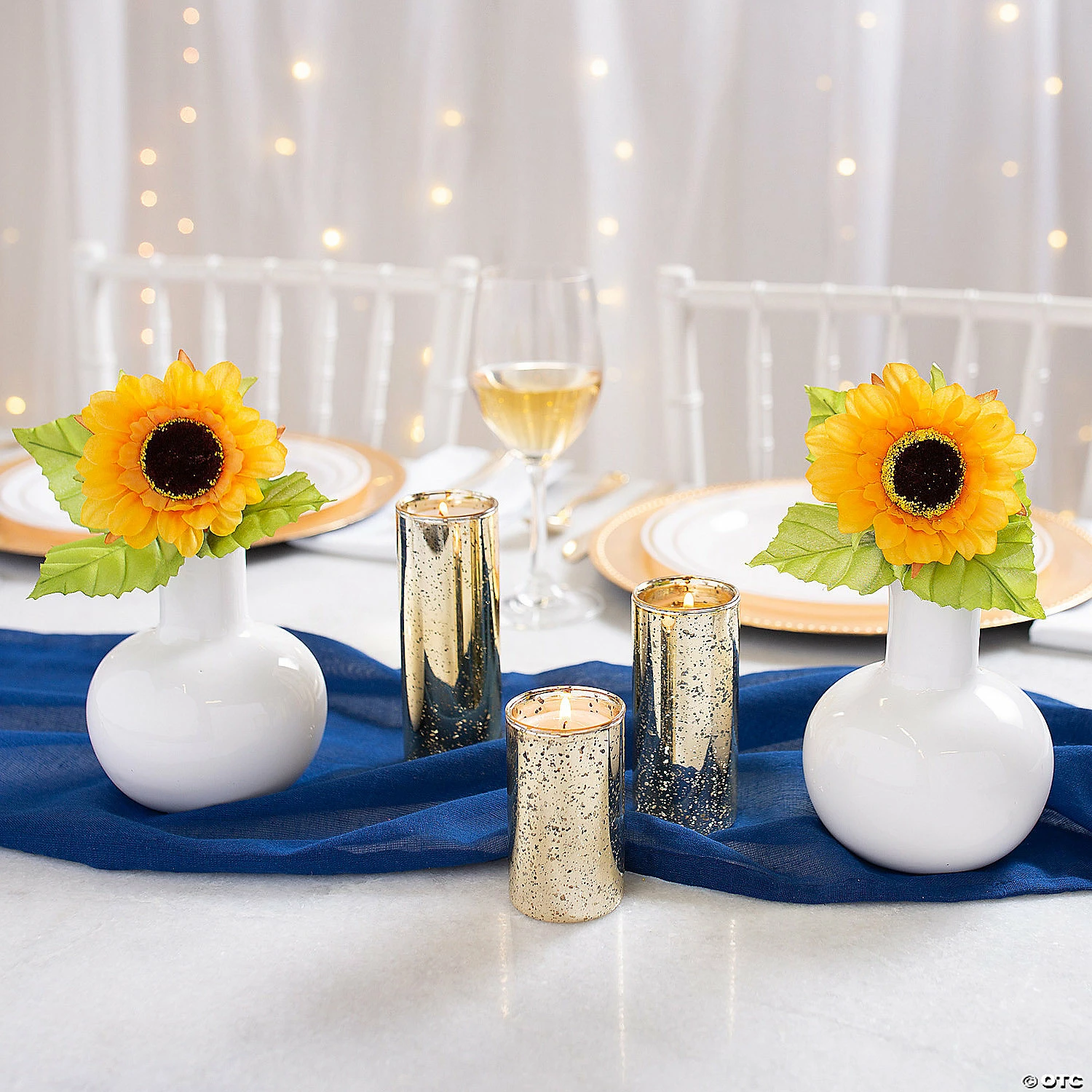 Elevate your tabletops wit these Gold-Flecked Mercury Candle Holders. Whether it’s as part of your wedding reception decorations or any formal event, you’ll make your centerpieces pop with these elegant accents. Each includes an inlay for a tea light. Glass. (3 pcs. per set) 3″ – 5″ x 1 3/4″ diam. Candles sold separately.