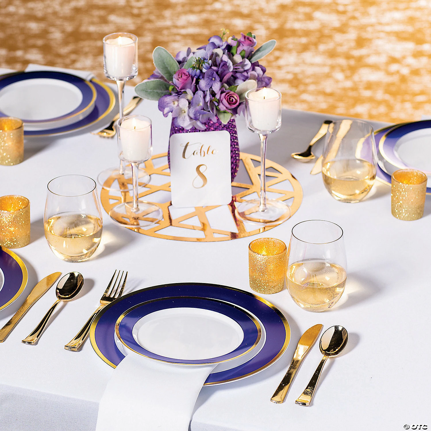 Make planning wedding tables even easier with this votive candle holder and battery-operated tea light set! No need to worry about open flames, simply stick a tea light into each votive and your wedding reception tables will look stunning in no time. Perfect for a gold wedding color scheme! Includes 12 glass candle holders, 2 1/2″ x 2″ diam.; and 12 plastic battery-operated tea light candles with an on/off switch, 1 1/2″. Includes batteries.