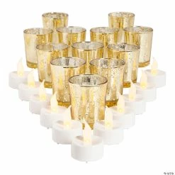 Promo π Mercury Glass Votive Candle Holders with Battery-Operated Candles – 24 Pc. π