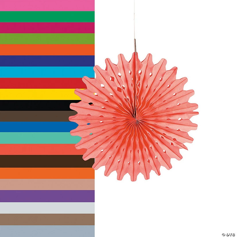 These simple ceiling decorations make it easy to transform any space into a beautiful party place. Use these Hanging Tissue Fans as party decorations, wedding decorations or prom decorations for the perfect pop! Choose your favorite colors and cluster these tissue fans together for the ultimate in easy DIY photo booth backdrops. Includes 4 of each 8″, 12″ and 16″ diam. tissue paper fans. Simple assembly required.