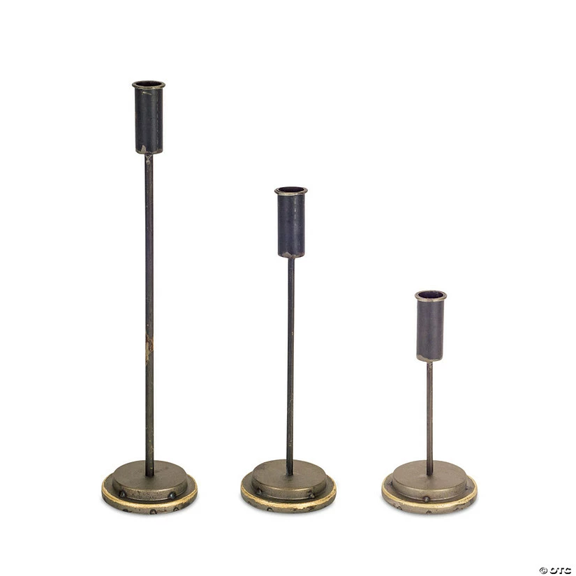 Illuminate your living space with this stylish set of Taper Candle Holders. The contemporary yet modern design paired with the antique metal finish and golden accents is the perfect combination to create a timeless display. The sturdy metal composition is sure to last for seasons to come. Complete the look by adding real wax or LED candle tapers. (Candles sold separately.)Β Β Special Shipping Information:Β This item ships separately from other items in your order.Β This item cannot ship to a P.O. Box.Β This item may be subject to additional processing days.Β Β Item is not eligible for expedited shipping.Β Β Β Β You may initiate a return for unused items within 30 days, if the items are in original packaging with all original materials included with the shipment.