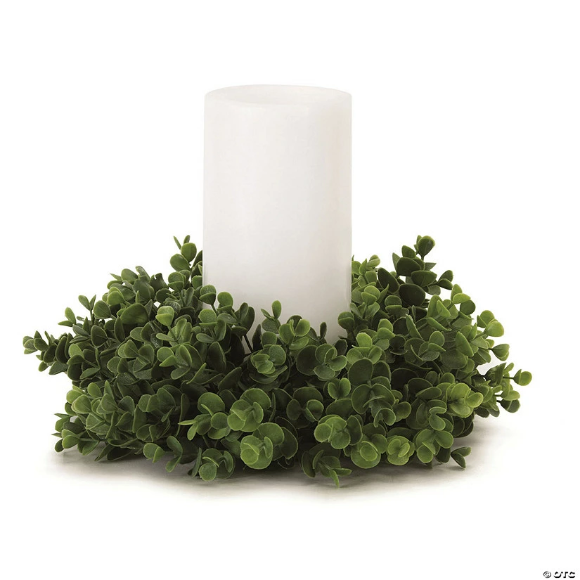 Add a pop of natural color to your home with this beautiful Eucalyptus Candle Ring. The classic green foliage makes for a great addition to any season’s decor. Display as a centerpiece to draw attention to the beauty, or add to an existing display to compliment your other decor. The durable polyester flowers are sure to last for seasons to come. Illuminate the piece with a real wax or LED 4″ candle. (Candles sold separately.) Featured in Melrose International’s “Cottage Garden” collection.Β Β Special Shipping Information:Β This item ships separately from other items in your order.Β This item cannot ship to a P.O. Box.Β This item may be subject to additional processing days.Β Β Item is not eligible for expedited shipping.Β Β Β Β You may initiate a return for unused items within 30 days, if the items are in original packaging with all original materials included with the shipment.