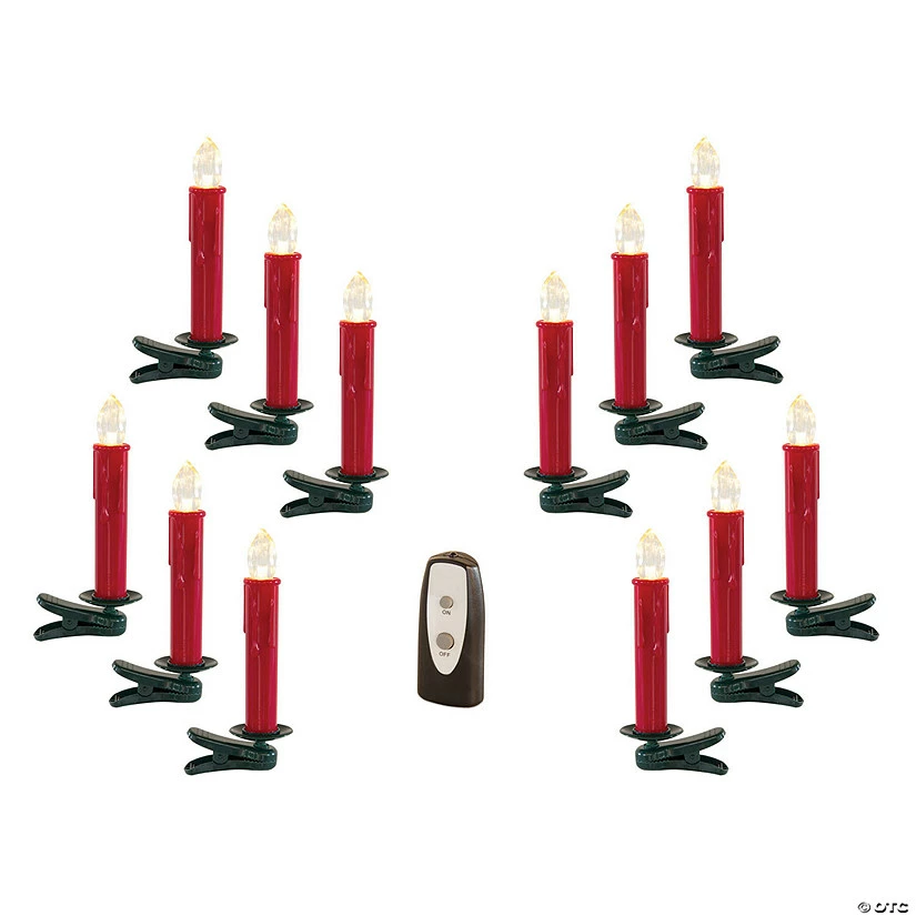 Add the beauty and ambiance flickering candles to your home with this stunning set of Red LED Clip-on Taper Candles. It has the appearance and texture of a real candle, but does not lend to the burnt smell and hazards involved with an open flame. The clip-on feature makes them the perfect addition to your holiday Christmas tree. This set features a remote control with a 4 and 8 hour timer fucntion, making it the perfect, hassle-free addition to your holiday home decor. Requires 1 AAA battery (not included).Β Β Special Shipping Information:Β This item ships separately from other items in your order.Β This item cannot ship to a P.O. Box.Β This item may be subject to additional processing days.Β Β Item is not eligible for expedited shipping.Β Β Β Β You may initiate a return for unused items within 30 days, if the items are in original packaging with all original materials included with the shipment.