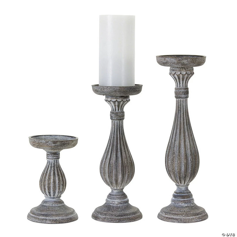 Illuminate your living space with this traditional set of Candle Holders. Featuring three assorted sizes, the traditional design paired with the white-washed finish is the perfect combination to create a timeless piece. Just add real wax or LED candles to complete the look. (Candles sold separately.)Β Β Special Shipping Information:Β This item ships separately from other items in your order.Β This item cannot ship to a P.O. Box.Β This item may be subject to additional processing days.Β Β Item is not eligible for expedited shipping.Β Β Β Β You may initiate a return for unused items within 30 days, if the items are in original packaging with all original materials included with the shipment.