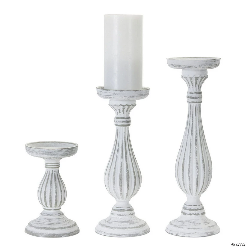 Illuminate your living space with this traditional set of Candle Holders. Featuring three assorted sizes, the traditional design paired with the white-washed finish is the perfect combination to create a timeless piece. Just add real wax or LED candles to complete the look. (Candles sold separately.) Featured in Melrose International’s “Waterfront” collection.Β Β Special Shipping Information:Β This item ships separately from other items in your order.Β This item cannot ship to a P.O. Box.Β This item may be subject to additional processing days.Β Β Item is not eligible for expedited shipping.Β Β Β Β You may initiate a return for unused items within 30 days, if the items are in original packaging with all original materials included with the shipment.