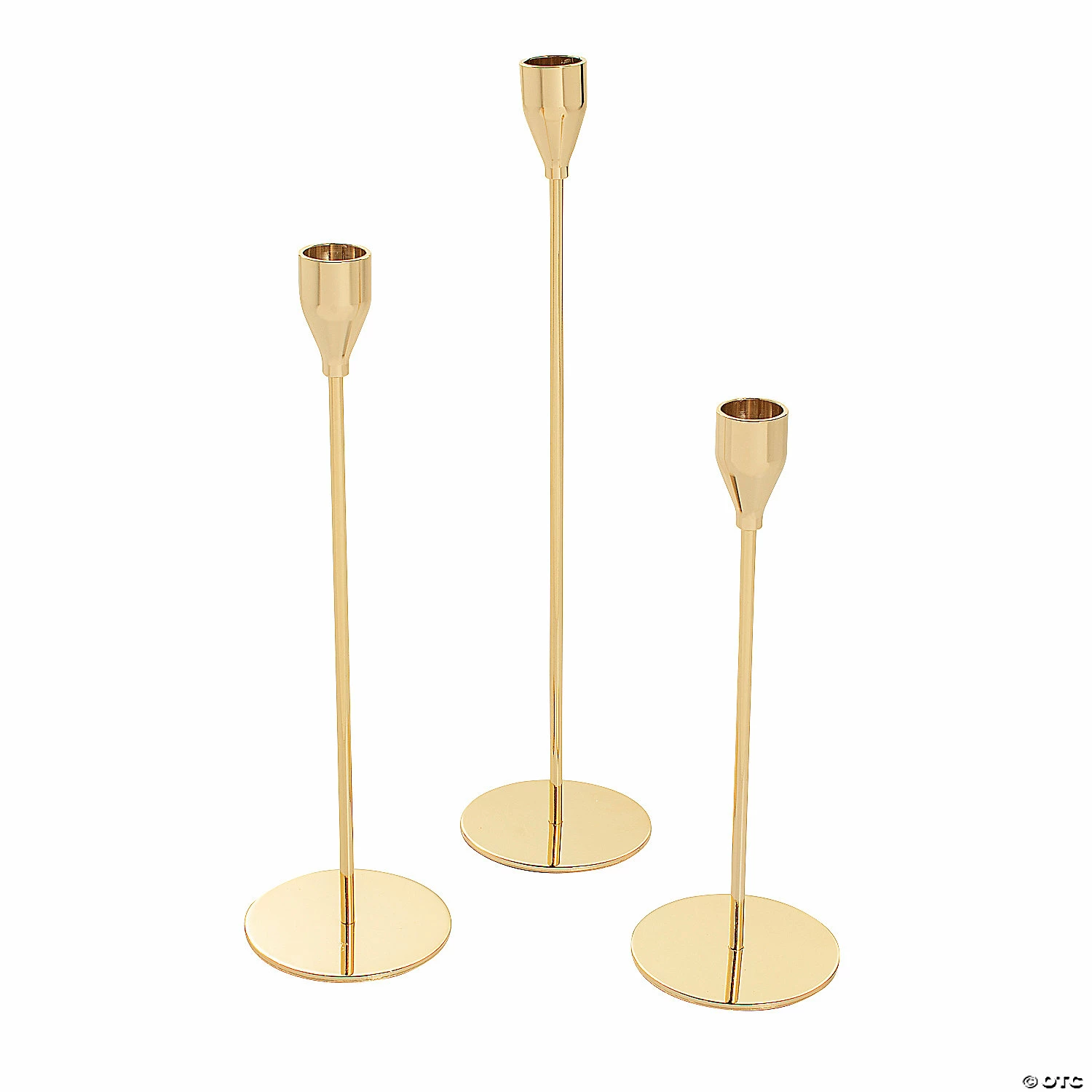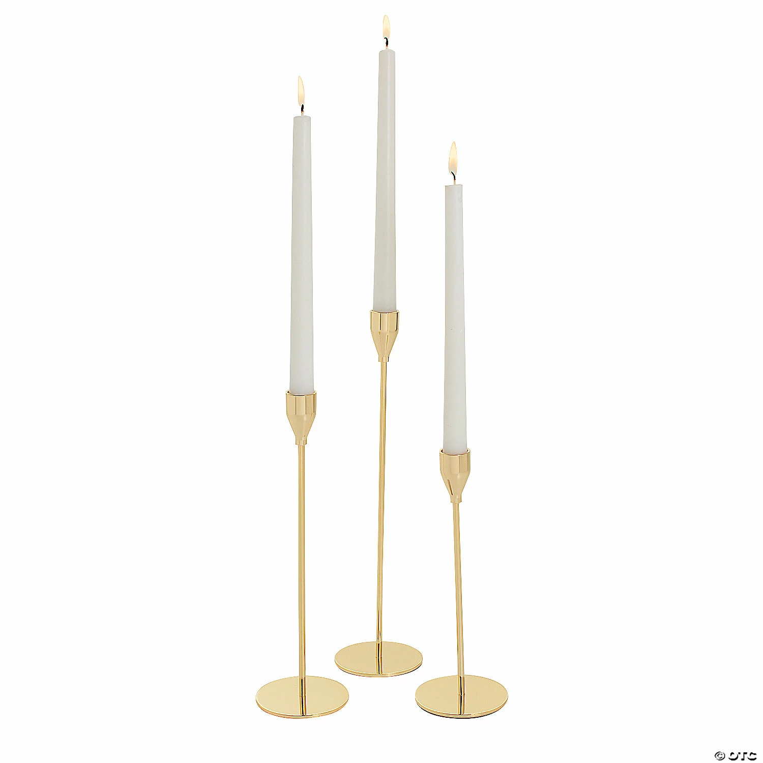 These timeless looking candle holders will provide an elegant touch to your event and room decorations! Incorporate these holders into the table centerpiece at your next formal event or use them for the unity candle ceremony at a wedding. Take them home afterwards and display them on your table or shelf as a classy dΓ©cor item. Metal. (3 pcs. per set) 8-1/2″ – 12-1/4″ Candles not included.