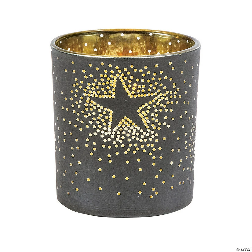 Add a starry glow to your big day! Wonderful for reception dΓ©cor, these Votive Candle Holders come in a sophisticated hue with gold detailing of a shimmering star. Whether used in wedding centerpieces or set neatly on the gift table, theyβll sparkle the night away and make nice keepsakes for friends and family. Just use flickering, fabulous battery-operated tea light candles! Glass. (6 pcs. per set) 3″ x 2 3/4″ diam.