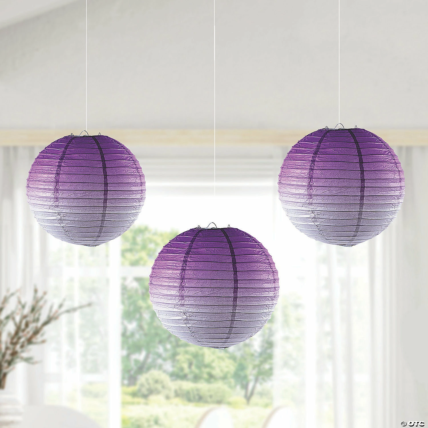 β’ QUALITY DECORATIONS: These sturdy, purple hanging decorations can be used time and time again to celebrate any occasion! Add in other solid color paper lanterns to add dimension to your party dΓ©cor.β’ PERFECT FOR ANY CELEBRATION: Add an extra special touch to birthday parties and celebratory events no matter the location; these reusable party decorations have you covered.β’ BUDGET-FRIENDLY DIY DΓCOR: Not just for parties, these lanterns make beautiful, affordable additions to classroom decorations, wedding decorations, anniversary parties, baby showers and more.β’ VIBRANT DESIGN: These unique lantern decorations contain rich and vibrant purple hues that give an array of color to any party or wedding theme. β’ CREATIVE ACTIVITY: Use these hanging globe lanterns as is or add your own craft embellishments and watercolor paints to transform them DIY art projects, custom decorations or whatever else your imagination dreams up! Makes a fun classroom or at-home arts and crafts activity.β’ EASILY ASSEMBLE AND REUSE TIME AFTER TIME: These purple paper lanterns are easy to assemble and hang with the included metal hangers. When youβre done, simply fold them flat for easy storage until your next party where you need a little purple dΓ©cor!β’ PARTY SUPERSTORE: Shop Oriental Trading for all of your party supply needs, from decorations to tableware to party favors and more. Weβre your true one-stop party shop!Product Description:Add a fun ombre touch to party decorations with these paper lanterns! Perfect for any event from birthday parties to holiday parties, the ombre design will add a unique dimension to your party space. Size: 12 inchesShape: RoundQuantity: 3Material: PaperIncludes metal hangers.Simple assembly required.