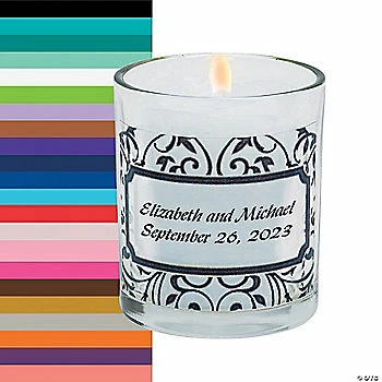 Use these Personalized Votive Candle Holders as bridal shower favors, wedding and reception decorations, wedding favors, party accents and so much more. Personalize the stickers with 2 lines of 22 characters/spaces per line. Glass. 2 1/2″ x 2″ diam. Simple assembly required to apply personalized sticker. © OTC