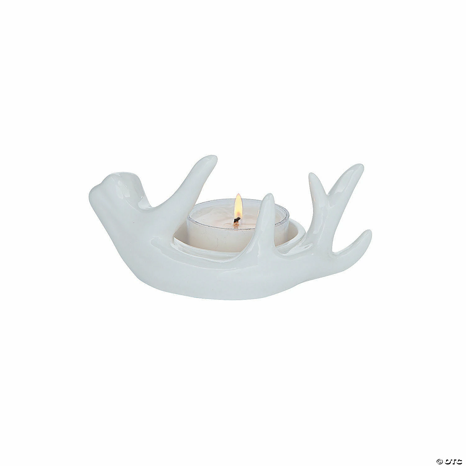 These White Antler Candle Holders will make it look like an antler is curling around your candle. These holders, which are great as wedding decorations, are a beautiful white and add an outdoorsy touch. Use them in groups as dining table centerpieces. Porcelain. (6 pcs. per set) 4 1/2″ x 2 1/2″ x 2″
